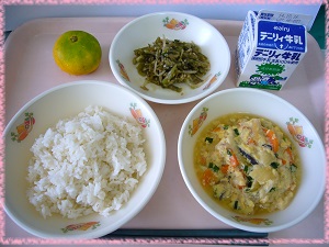 今日は親子どんぶりでした。卵がふわふわしてとてもおいしかったと好評でした。