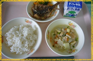屋久島産のお米やパパイヤとともにふるさとの恵みいっぱいの今日の給食でした。