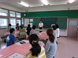 学校長のあいさつ,給食概要や学校における食育の取組についての話の後,給食を試食していただきました。