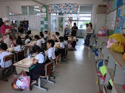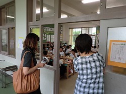 試食後は,自分のお子さんの給食の準備や食事の様子を参観していただきました。