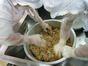 「とびうおミンチのにらみそ焼き」調理の様子を紹介します。