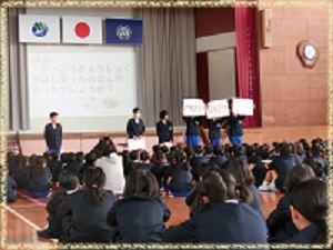 給食週間にちなんで給食の歴史などを紹介した後,クイズを行いました。