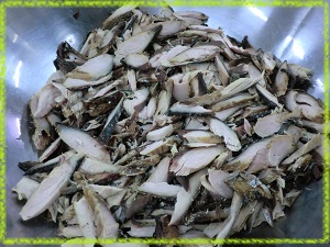 さば節の骨をていねいに取り除いて,スライスします。